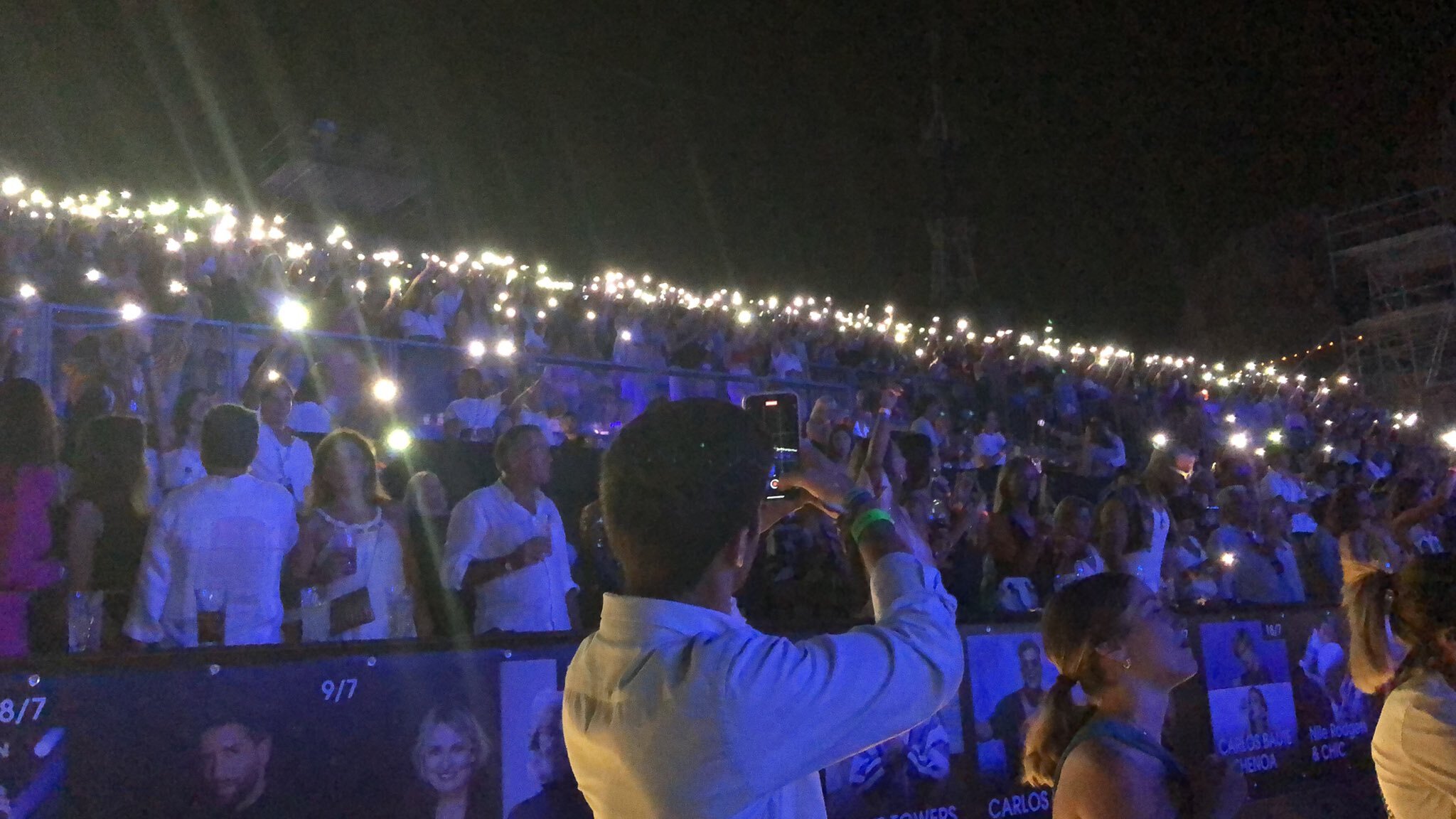 Como espectadores de ese momento mágico estuvieron personalidades como Hernaldo Zúñiga con su mujer Lorenza Azcárraga, Jaime y Marta Martínez Bordiú, Pedro y Begoña Trapote, y el expresidente del Real Madrid Vicente Boluda con su mujer, que disfrutaron del concierto en el palco presidencial junto a Sandra García-Sanjuán. Asimismo siguieron el recital en un mismo placo Elías Bendodo( número 3 del PP a nivel nacional ) y el alcalde de Benahavis, José Antonio Mena.