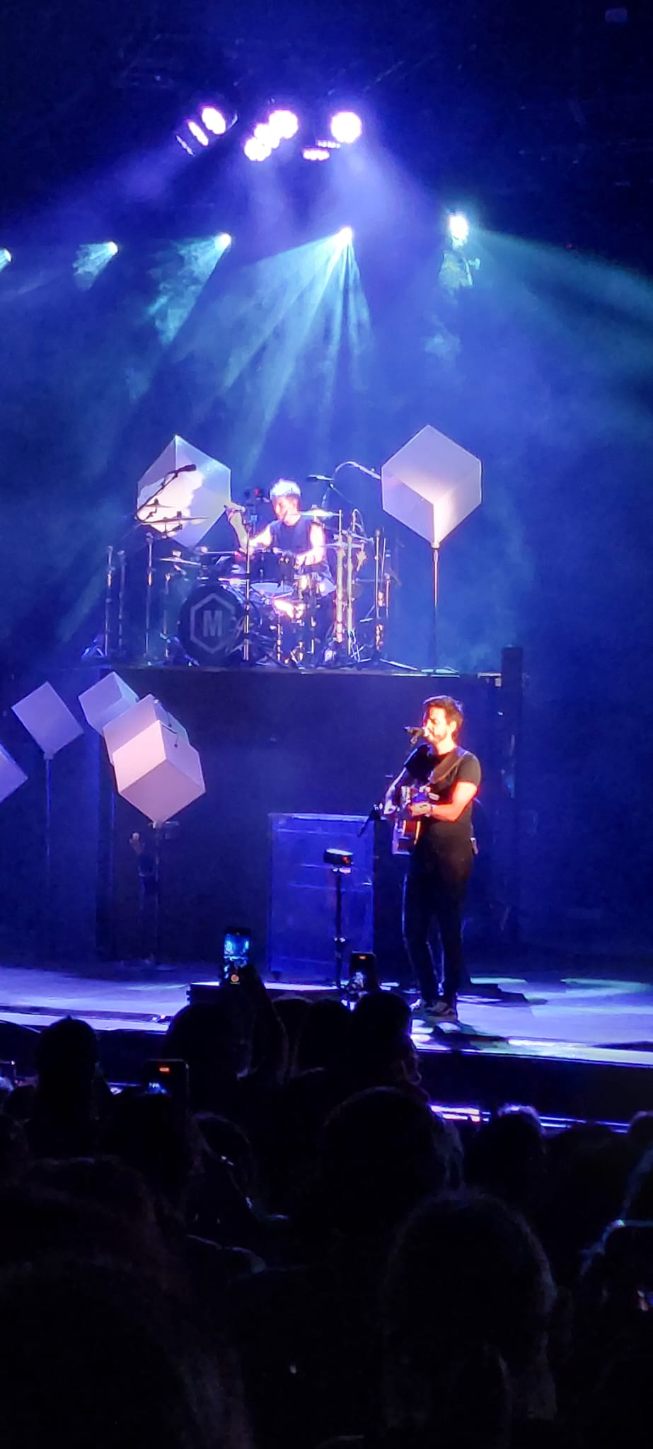 Segundo concierto de la banda colombiana Morat en Starlite Catalana Occidente Marbella y segundo lleno. Con público de todas las edades, muchas mujeres y una clara coincidencia: no se puede ver un recital de estos chicos sentados. hay que empezar a bailar desde el momento que saltan al escenario. Nada más salió la primera canción( «Besos en guerra») el gentío comenzó a acompañar la letra, lo que fue la tónica predominante de toda la noche.