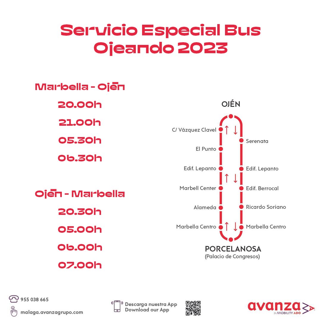 OJEANDO Festival contará con un servicio de autobuses a las 20:00h, 21:00h, 5:30h y 6:30h horas entre Marbella y Ojén y a las 20:30h, 05:00h, 06:00h y 07:00h entre Ojén y Marbella.