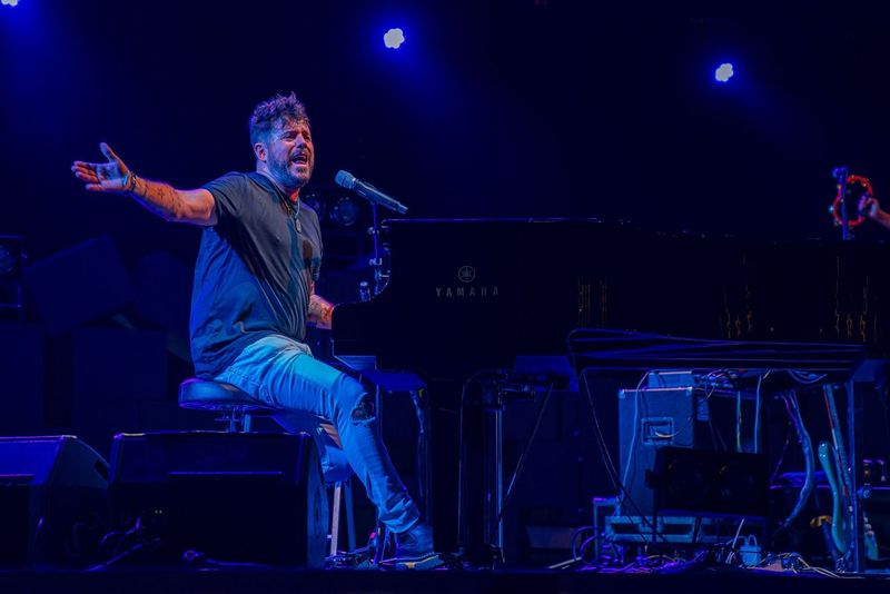 La velada prometía y el festival desprendía esa emocionante excitación que precede a lo que, sin estar escrito, se sabe que será único. Pablo salió al escenario muy bien acompañado. Su inseparable piano de cola y su banda de siempre le arropaban. Fue al sonar los compases de “Unikornio”, cuando el público confirmó la magnitud del espectáculo que estaba por vivir.
