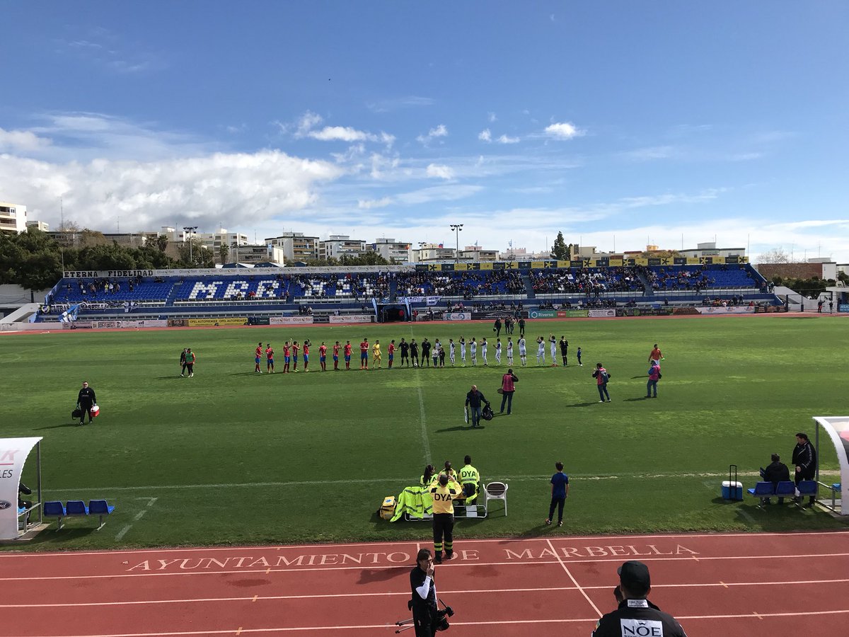 Primero y cuarto del grupo jugaban en el Municipal de Marbella. Analizando esto( como el propio entrenador local Fernando Estévez indicaba en la rueda de prensa) no hay que valorar negativamente el reparto de puntos( 1-1) entre el Marbella FC y el Real Murcia. Un partido con más de 2.000 personas en las gradas( un centenar de ellos venidos de Murcia) y que afortunadamente se escapó de la lluvia en el horario matinal. Eso sí, la Borrasca Emma dejó el campo en mal estado en distintas zonas del terreno de juego, lo que perjudicó seriamente a los locales en su apuesta por construir juego con toque y técnica.