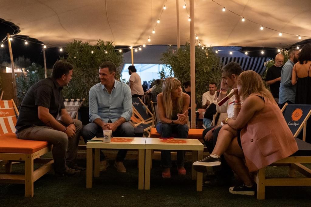 El presidente del Gobierno español en funciones, Pedro Sánchez, apareció en la noche del viernes junto a su mujer, Begoña, en el Cala Mijas Festival 2023. Entre otros estuvo, de forma distendida, viendo las actuaciones de grupos claves de la música indie española como The Strokers, Lori Meyers y Cariño.