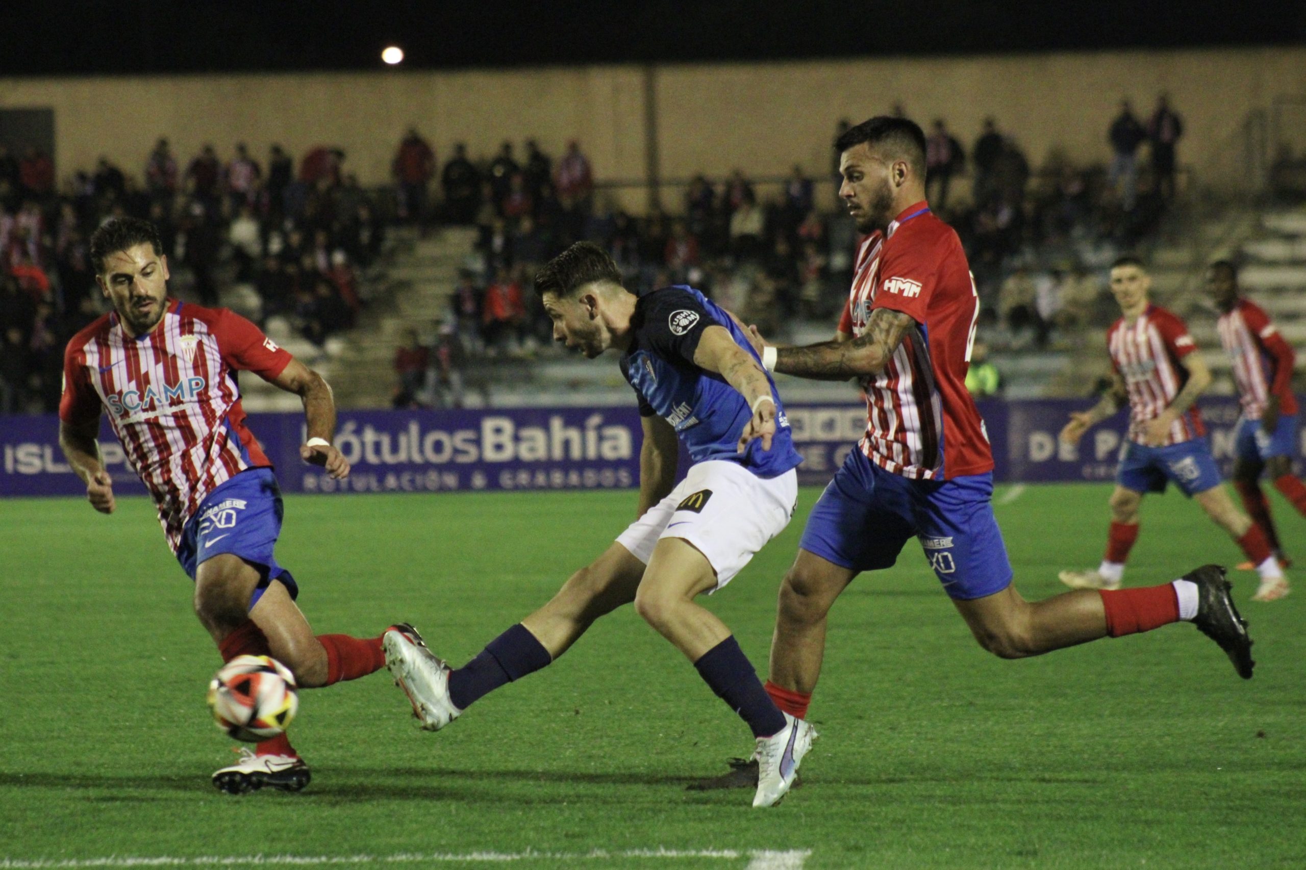 Sin embargo, los albirrojos no podrían disfrutar de mayores ocasiones en los minutos restantes del encuentro, mientras defendía con buena planta los acercamientos de un San Fernando decidido a sumar los tres puntos en el derbi provincial.