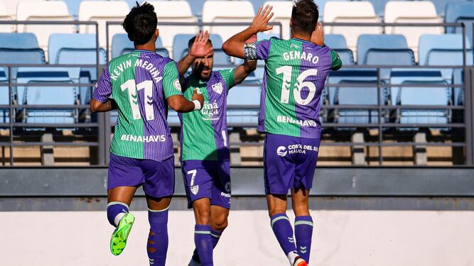 Málaga CF: Alfonso Herrero, Puga, Juande, Ferreiro, Juanpe (Dioni, 46’), Kevin Medina (Antoñito, 75’), Genaro (Dani Lorenzo, 66’), Dani Sánchez, Roberto (Manu Molina, 46’), Nelson Monte y Sangalli (Cordero, 81’).