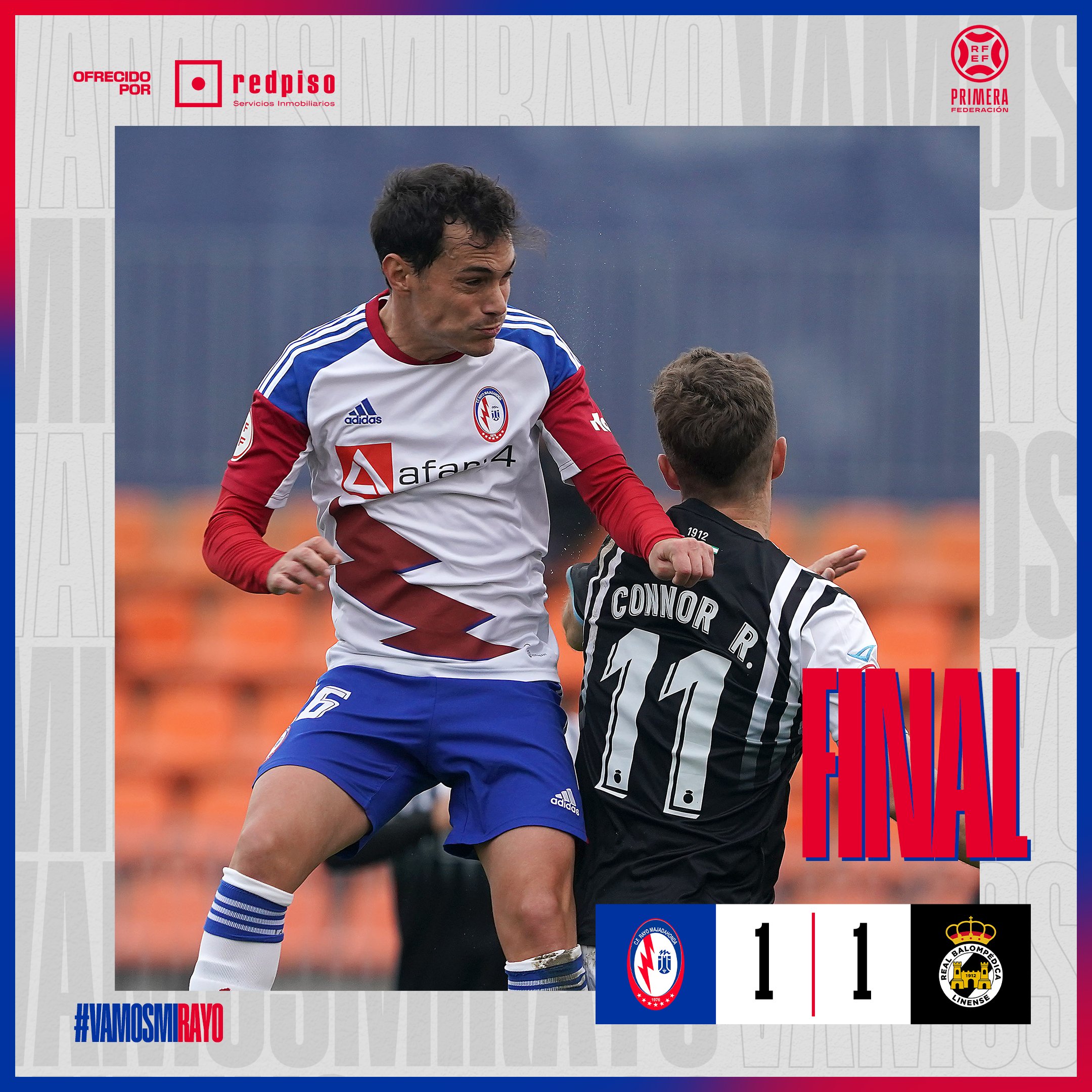Alineaciones: RAYO MAJADAHONDA (1): Lucho García; Aldalur, Ofoli, De Iriondo (m.46, Alayeto), Mario García, Néstor Albiach, Jeisson (m.64, David Rodríguez), Pinillos, Ozkoidi (m.46, Jorge Casado), Rahim (m.46, Sergio Llamas) y Nando (m.86, Donoso).