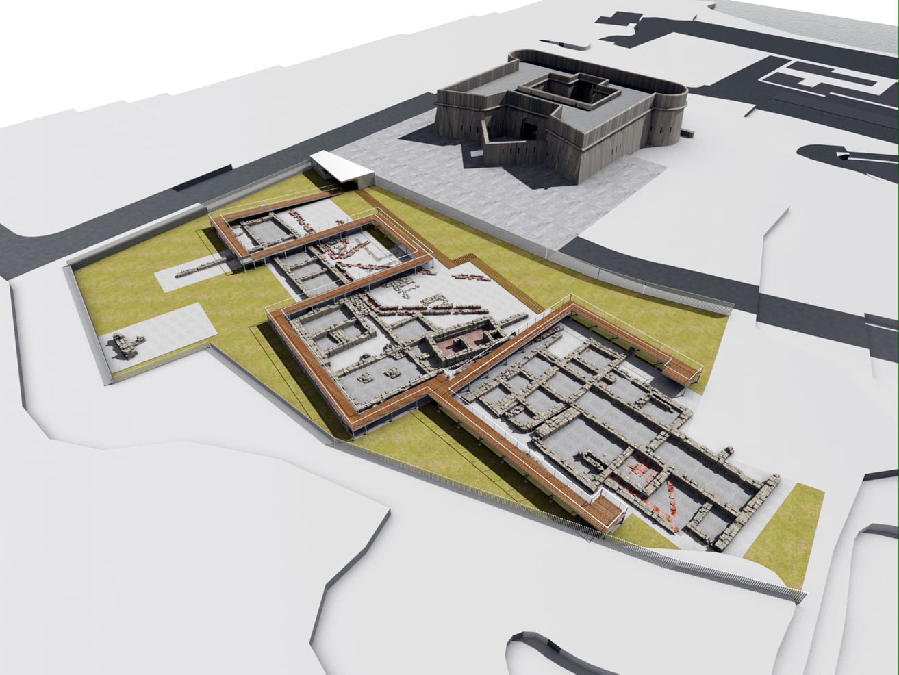 La propuesta se configura sobre el informe elaborado por la empresa de arqueología Aratispi, después de la limpieza y levantamiento topográfico de las estructuras. En dicha propuesta se contempla el cerramiento perimetral de la zona del yacimiento que se aborda en esta primera actuación, así como un circuito de musealización mediante pasarelas flotantes con puntos panorámicos acompañados de paneles explicativos. Se estudiará el plan de mantenimiento futuro, los sistemas de evacuación de aguas y la iluminación del yacimiento.