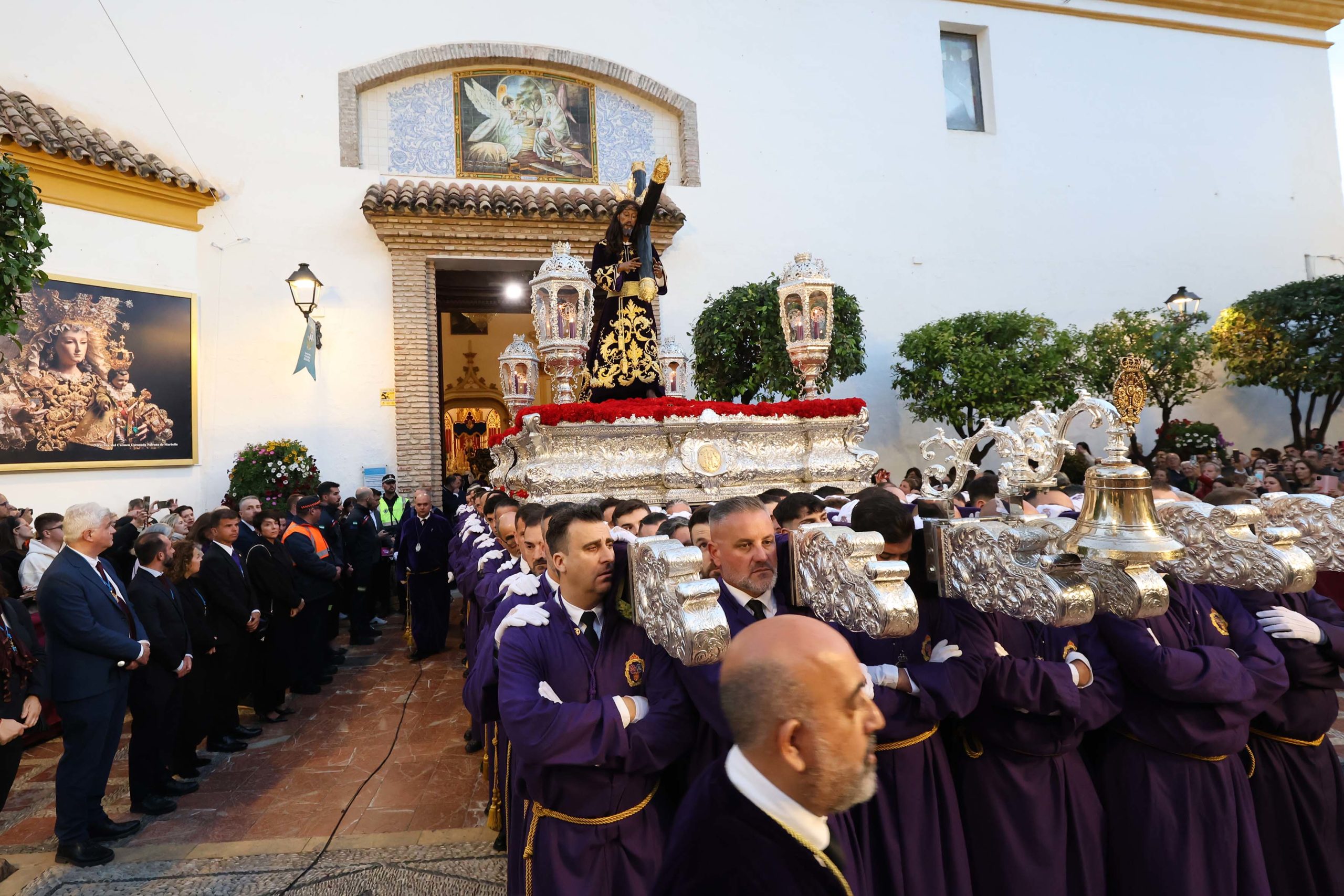 Marbella vivió con emoción la salida procesional del ‘Nazareno’ en el Miércoles Santo. La Real, Ilustre, Venerable y Antigua Hermandad Sacramental de Nuestro Padre Jesús Nazareno, María Santísima del Mayor Dolor y Santo Sepulcro realizó un sentido homenaje a las víctimas de la DANA de Valencia. Miembros del equipo de Gobierno acompañaron a la hermandad, que acortó su recorrido final ante el riesgo de lluvias.