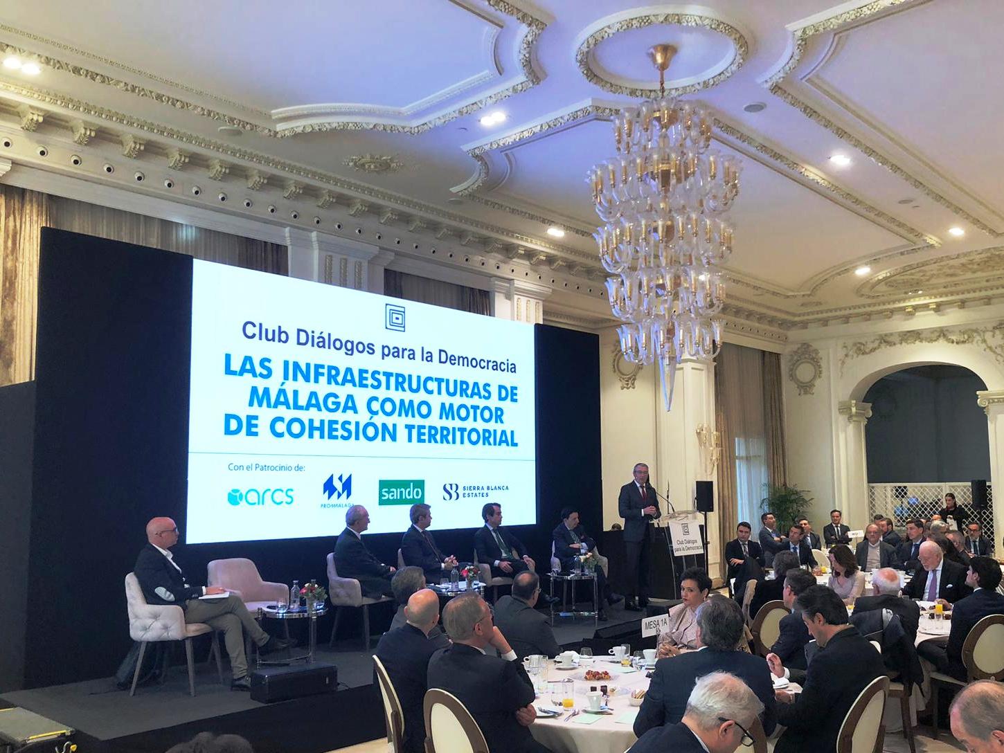 Así lo ha expuesto hoy en el desayuno informativo ‘Las infraestructuras de Málaga como motor de cohesión territorial’, organizado por el Club Diálogos para la Democracia, un encuentro que ha contado con la presencia, entre otros, del secretario de Estado de Transportes y Movilidad Sostenible, José Antonio Santano.