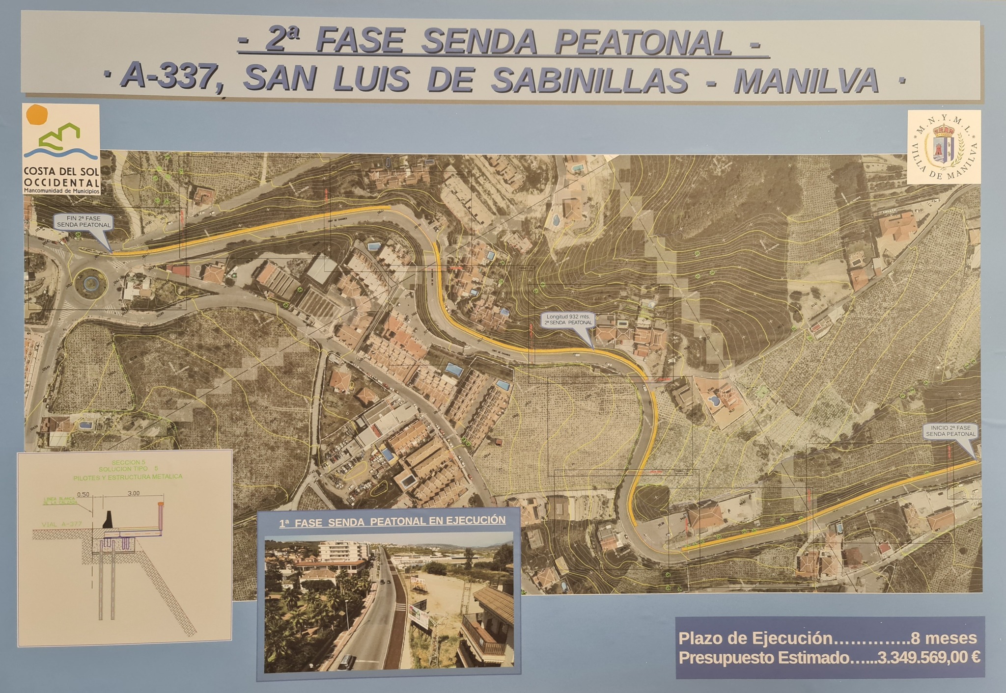 Esta segunda fase planteada cuenta con un presupuesto estimado de 3.349.569,00 € y un plazo de ejecución de 8 meses. El trayecto transcurriría desde la bodeguita hasta la rotonda de Manilva, por lo que la ejecución será más laboriosa al tener que pivotar en distintas zonas.