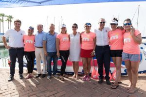 Más de 10 kilómetros, o lo que es lo mismo, 6,5 millas náuticas, las separaban del Puerto Deportivo de La Duquesa, en Manilva, hacia donde dirigieron el rumbo tras una suelta de palomas blancas de la firma Paloma Blanca. La concejal de Playas del Ayuntamiento de Estepona, Susana Aragón y el edil de Deportes, Adrián Trujillo, junto al presidente de Marinas del Mediterráneo, José Carlos Martín, acompañaron a las chicas en la salida, además de mucho público curioso que no quiso perderse el entrañable momento así como el comisario del Cuerpo Nacional de Policía en Estepona, Fernando Calleja.