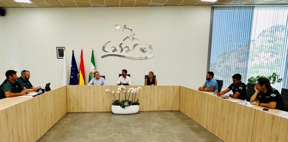 Con el objeto de coordinar los efectivos de seguridad que velaran por la celebración de las ferias del municipio, esta mañana se ha reunido la Junta Local de Seguridad, que ha estado presidida por el alcalde Juan Luis Villalón, y a la que han asistido, la teniente de alcalde, Antonia Pineda, el concejal de Fiesta, Alejandro García, responsables Subdelegación del Gobierno, de la Comandancia de la Guardia Civil de Marbella, el Puesto de Casares y la Jefatura de la Policía Local.