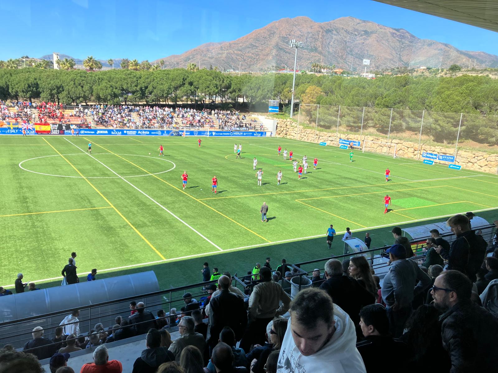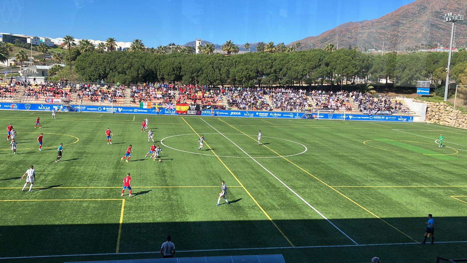 El encuentro comenzó igualado y con mucha lucha en el centro del campo, pero marcado también por la sensación de nervios atrás de la Balona y muchas faltas. Así llegó la primera acción de peligro local a los 13´ donde la zaga balona se mostró muy blanda. Un tiro de Nacho Goma que desvía Ackerman, pero de nuevo el Estepona logra centrar y ahí Robin Lafergue sin que le defendieran bien metió el pié para el 1-0. Un golpe para la moral balona, pero los campogibraltareños reaccionaron bien y en el 19 le devolvieron la jugada a los locales. Una falta mal defendida por los rojillos permite a Fran Carbiá colarse solo en el área y batir, de tiro razo, a Razak. Era el 1-1 y empezar de nuevo para ambas escuadras.