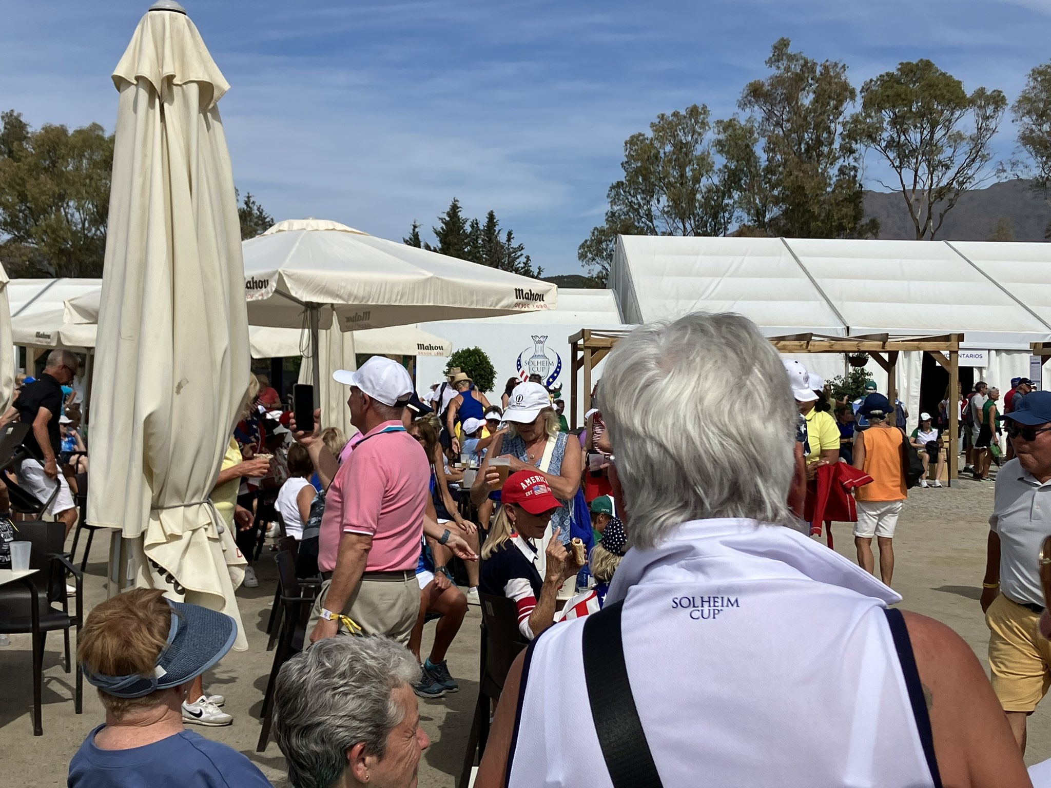 Más de 500 profesionales de los medios de comunicación se han acreditado para seguir en vivo la Solheim Cup 2023, y de ellos, más o menos la mitad trabajan los tres días en la inmensa carpa de prensa habilitada para ellos. Una pantalla gigante les permite seguir en directo los distintos partidos de forma simultánea. Además, los periodistas cuentan con todas las comodidades para desarrollar su trabajo y con un comedor de prensa.