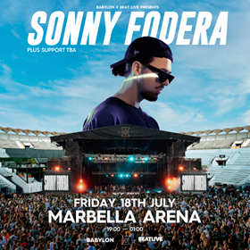 Uno de los artistas más escuchados de la música electrónica a nivel mundial, Sonny Fodera, aterrizará el 18 de julio en el escenario de Marbella Arena. La sensación del house traerá su energía y sonido inconfundible para ofrecer la mejor noche.