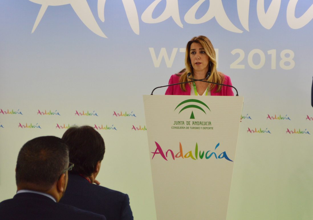 La presidenta de la Junta de Andalucía, Susana Díaz, ha destacado en la jornada inaugural de la feria World Travel Market (WTM) de Londres que Andalucía cerrará el ejercicio 2018 con los mejores resultados de su historia, al superar su propio récord y alcanzar, por primera vez, la cifra de 30 millones de turistas recibidos, gracias al crecimiento “sostenible” tanto del mercado nacional (un 1,5% más) como del internacional (un 0,4% más).