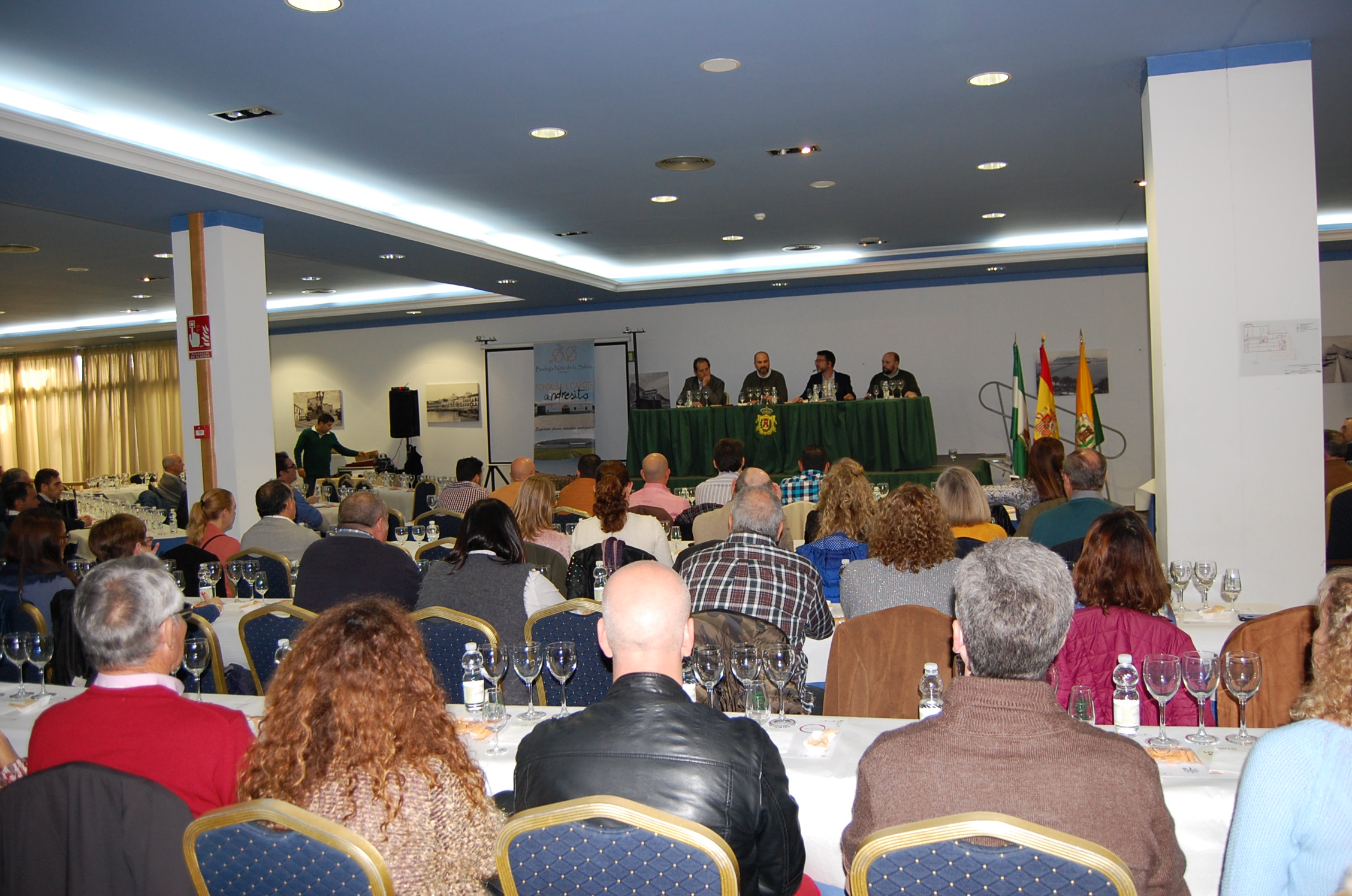 La jornada del domingo ha comenzado con una cata de vinos andaluces en el Hotel Montera de Los Barrios. Un acto organizado por la Asociación Gastronómica ‘A nuestro aire’ y donde el público asistente ha podido degustar cuatro vinos de la bodega Niño de la Salina, de la localidad malagueña de Almargen.