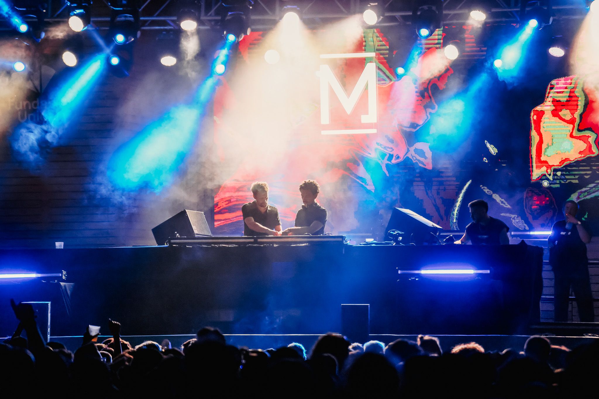 Ya entrada la noche, el tándem formado por Agustín Giri B2B Miguel Payda ofreció una sesión impecable cargada de groove, técnica y sensibilidad, dando paso a los cabezas de cartel The Blaze. El dúo francés no decepcionó. Su DJ set fue una experiencia envolvente y visualmente poderosa, que permitió su lugar como uno de los nombres más impactantes del panorama internacional.