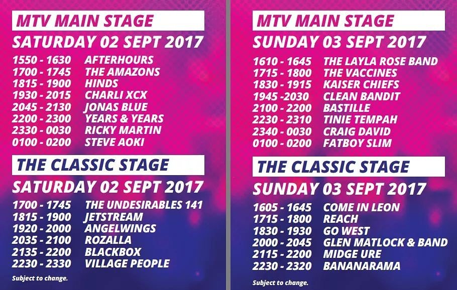 Para el domingo los nombres estelares son Craig David, Tinie Tempah, Kaiser Chiefs, Fatboy Slim o las históricas Bananarama.