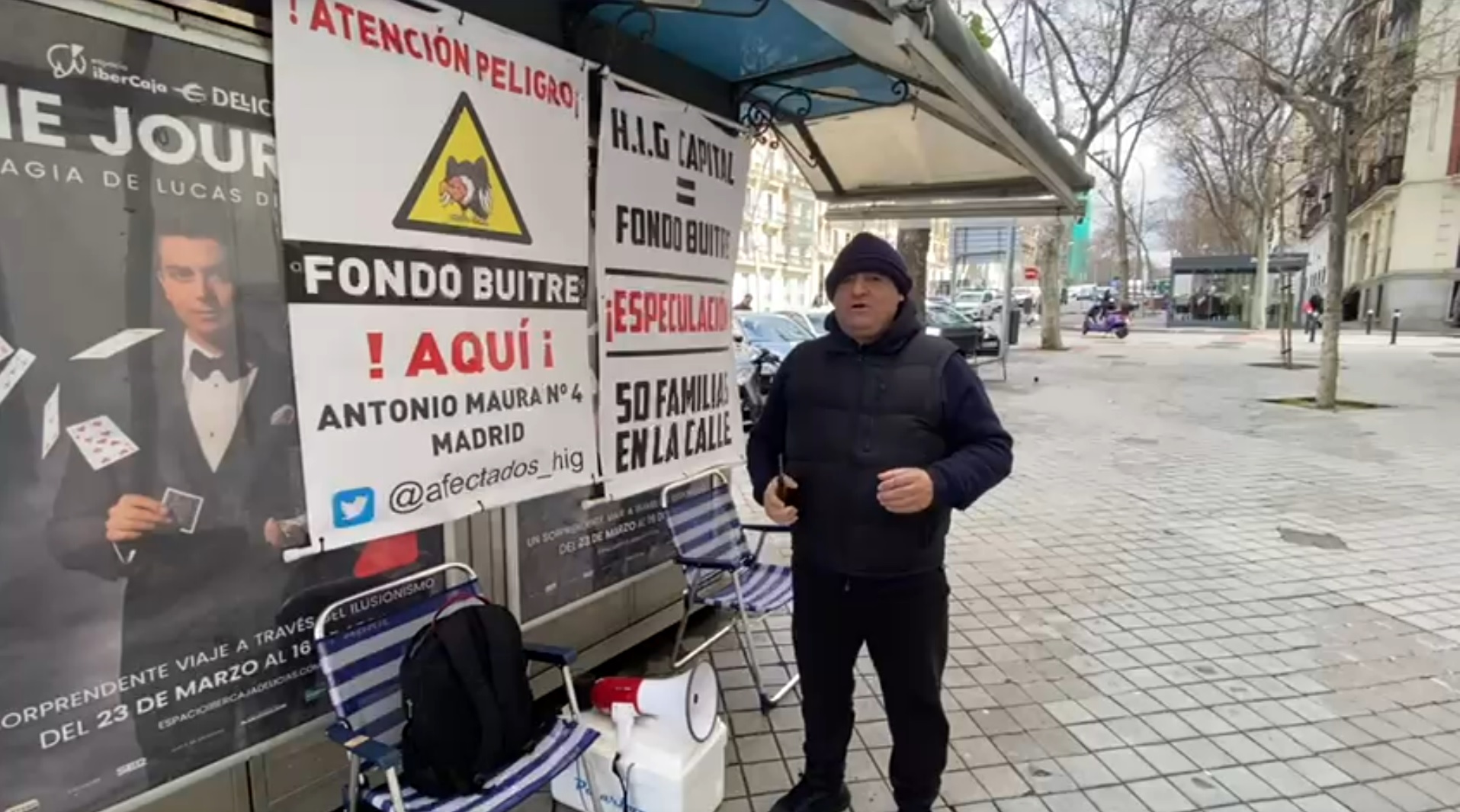 Medio centenar de familias, que dependen de los puestos de trabajo que ahora peligran, vienen concentrándose desde hace diez meses, todas las semanas, a las puertas de la sede de HIG Capital, en calle Antonio Maura, 4 de Madrid.