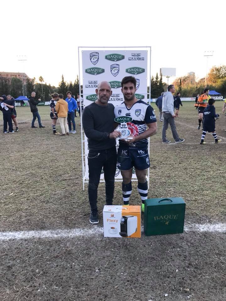 Había expectación en la grada y se notaba que no era un choque cualquiera. El tercero y cuarto de la tabla se veían las caras. Quizás los nervios atenazaron a los locales que no desplegaron su juego habitual. Los sevillanos pisaban más el área local y a los 13´ llegó el primer ensayo de castigo( hasta 2 se vieron esta tarde) seguido de otros siete puntos a los 20 para completar un 0-14 peligroso. Los de Almeida comenzaron entonces a tocar más el balón y vino la reacción con el ensayo de Pando y la transformación de Lupi Rinero para firmar el 7-14 con el que se llegó al descanso.