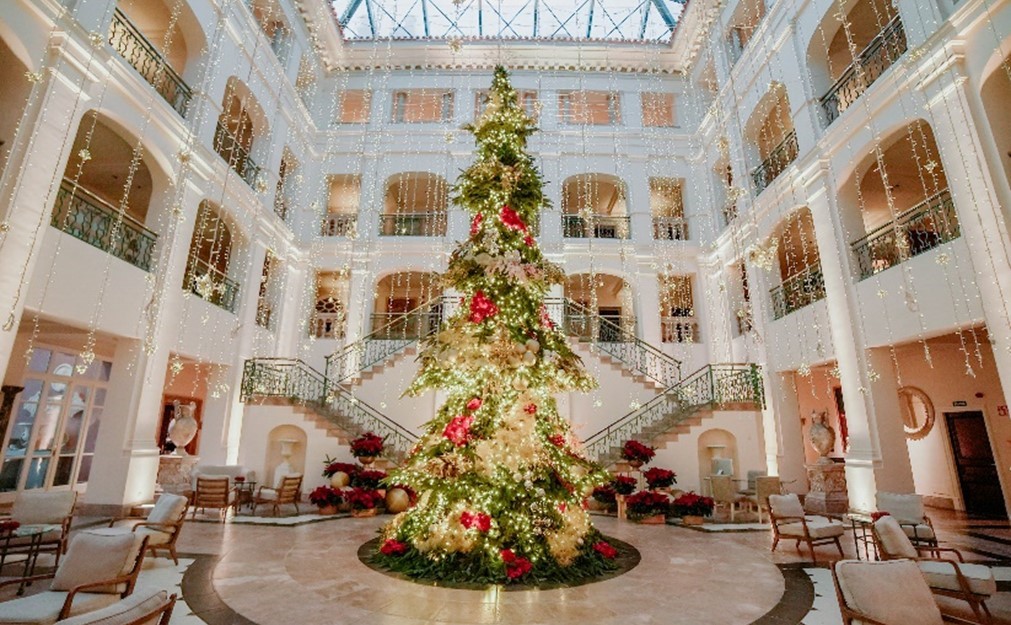El hotel celebra Nochebuena con un menú muy especial diseñado por el Chef ejecutivo Manuel Navarro que brinda protagonismo a los productos nacionales con deliciosos platos donde destaca el pulpo a la parrilla con jamón Cinco Jotas y espuma de pimentón de Extremadura o el lomo de vaca madura con duxelle de boletus sobre brioche y jugo de vino de Málaga como principal. De postre un bizcocho de pistacho con cremoso de chocolate de frambuesa y salsa de maracuyá para ponerle el toque dulce a la velada. Para que sea más especial, este distinguido menú se servirá en el Lobby del Hotel, un ambiente encantador e íntimo que invita a disfrutar de una magnífica velada en torno al árbol de Navidad.