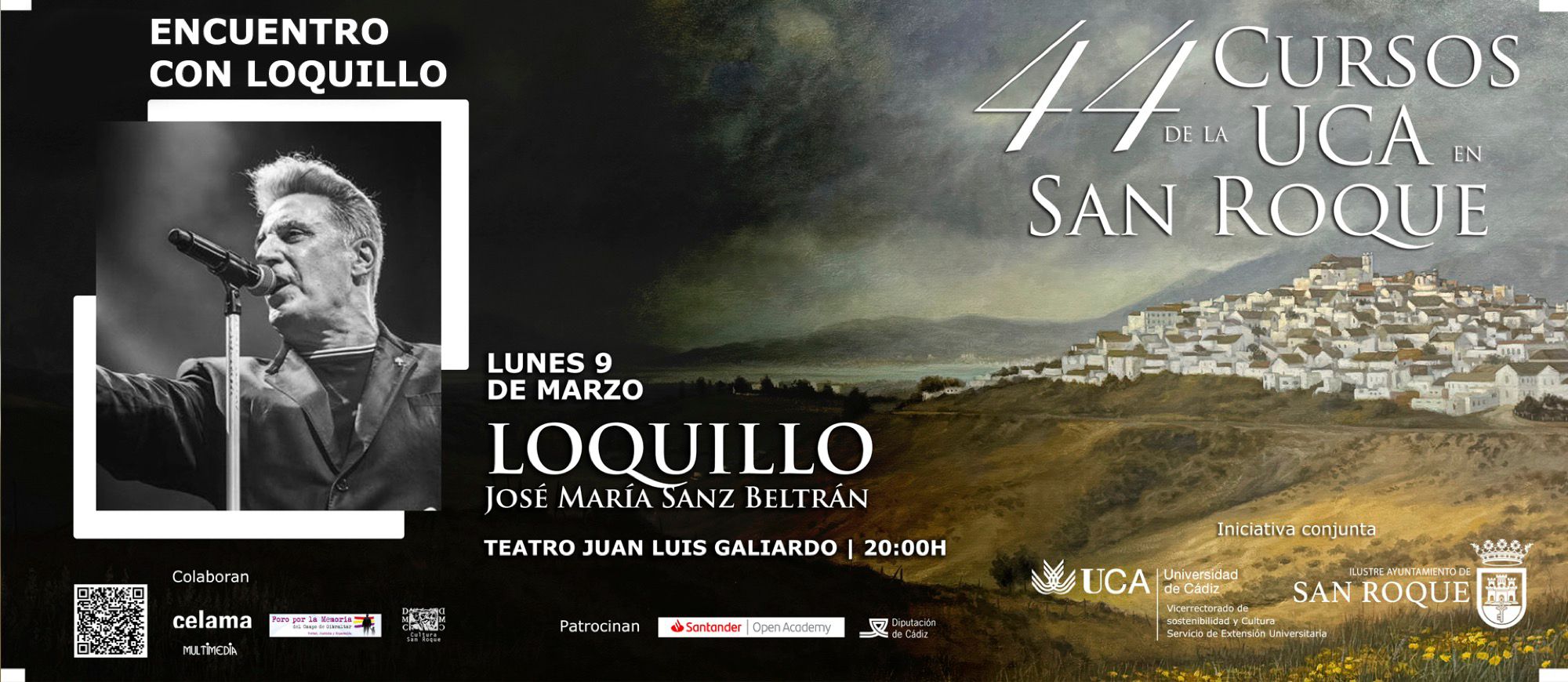 El municipio de San Roque celebrará del 9 al 19 de marzo la 44 edición de los Cursos de la Universidad de Cádiz, que constará con un encuentro con José María Sanz Beltrán (Loquillo); dos Seminarios, bajo los títulos Pacto Europeo de Migración y Asilo; y De tarimas Púlpito, y varios actos paralelos, en forma de talleres, representación teatral y proyección de película conforman el programa de actos