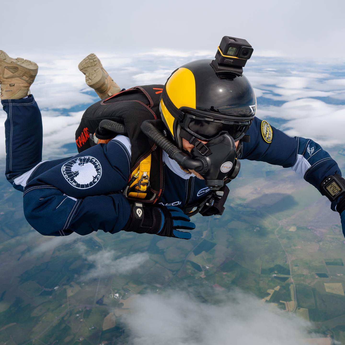 La modalidad de salto ejecutada por Campo -HALO, en inglés, High Altitude Low Opening-, era hasta hace poco, era especialidad militar para infiltrar líneas enemigas saltando desde más de 25.000 pies, equivalentes a casi 8 km de altura.