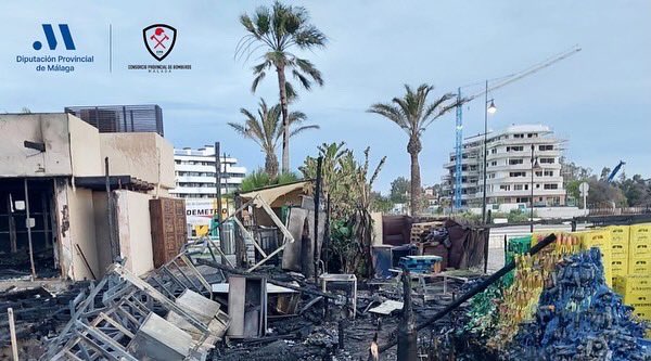 Un incendio destruye el Chiringuito El Silencio, en Torremolinos
