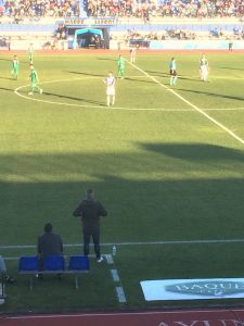 En la segunda parte pasó de todo. El Marbella FC salió con una «pájara» notable que en sus primeros quince minutos dieron alas al Mancha Real. De hecho llegó el empate a los 50 minutos de penalty en una acción muy discutibe de Beitia a Airam que transformó el mismo. Y pudo ser peor porque en el 61 una vaselina de Pedrito se estrelló en el larguero. Podía haber sido el 1-2, pero las cosas que tiene el fútbol. En la siguiente acción llegó el primer tanto de la tarde de Kike Márquez que representó el 2-1. Un centro con mala salida del meta Emilio y cabecea el jugador del Marbella a la red. Un 2-1 estratégico por como se estaba desarrollando el choque. Los visitantes no se dieron por vencidos y volvieron a tirar al larguero en el minuto 66 con un cabezazo de Alvaro. No había buen juego, pero sí mucha emoción. Después de volver a dominar el centro del campo el Marbella pareció sentenciar el envite en el minuto 70, con una gran jugada ofensiva que remató raso a la red Kike Márquez en su segunda diana del día( ya suma 11 goles en estga temporada). Con el 3-1 el Marbella «enfrió» el partido hasta que en el minuto 89 Carlos Julio derribó dentro del área a Israel Jerez. Otro penalty contra los locales que volvió a transformar Airam aunque esta vez con menos claridad porque Guille Lara pudo pararlo y se le escapó el balón. En el descuento( minuto 91) vino la jugada polémica con un córner a favor del Mancha Real que tras un rebote llegó a los piés de Alvaro para marcar el gol. El árbitro lo anuló por falta en el salto y la verdad es que se vieron empujón en la acción por los visitantes.