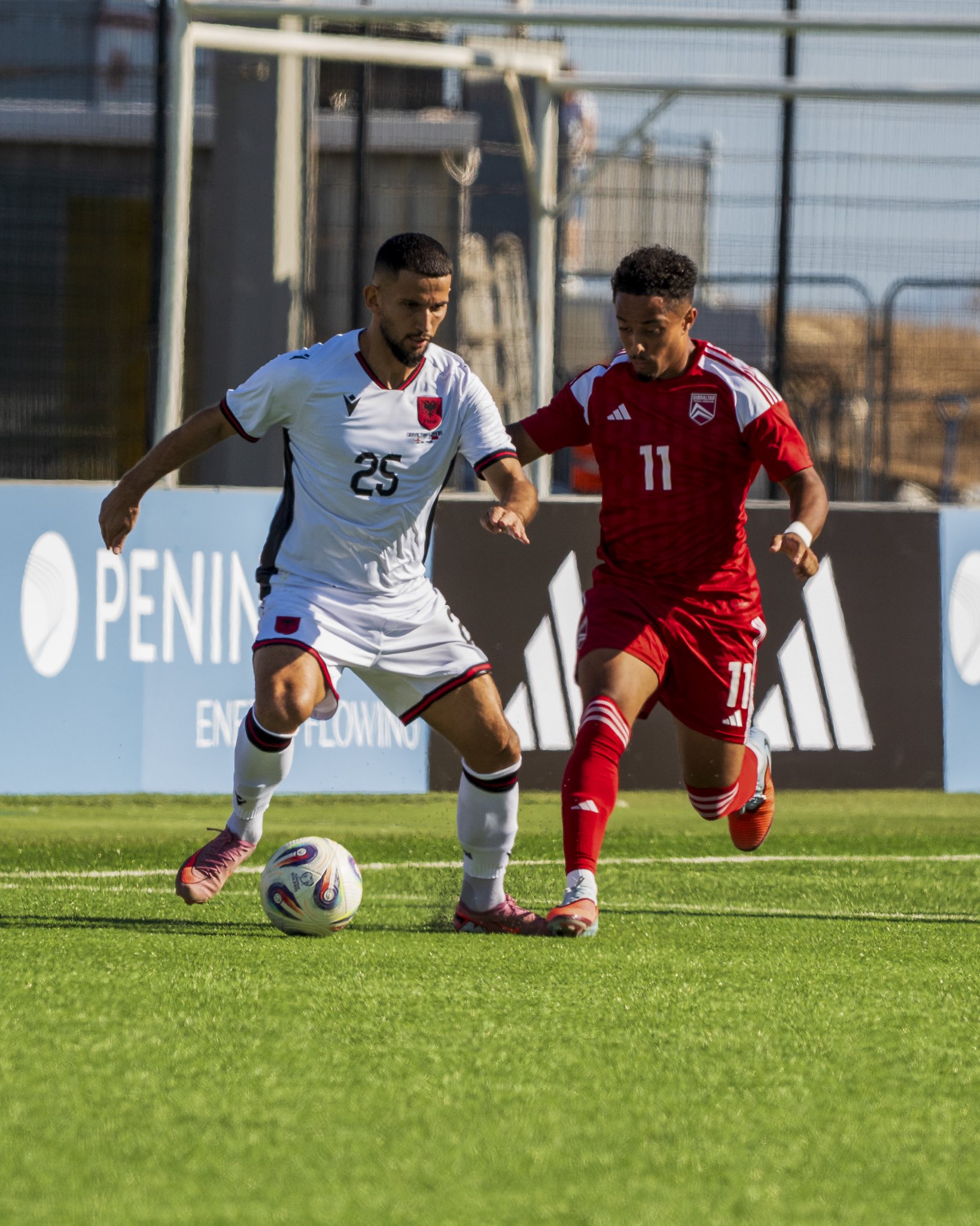 En un partido parejo y muy luchado Gibraltar perdió en casa( 0-1 ) ante Albania. Los albaneses dispusieron de más ocasiones de gol y en la segunda mitad todo se decidí por un penalty infantil que no desaprovechó Asani. Pese a todo buena impresión de Gibraltar muy rejuvenecida en esta convocatoria. Era el partido número 99 de la historia de la selección gibraltareña.