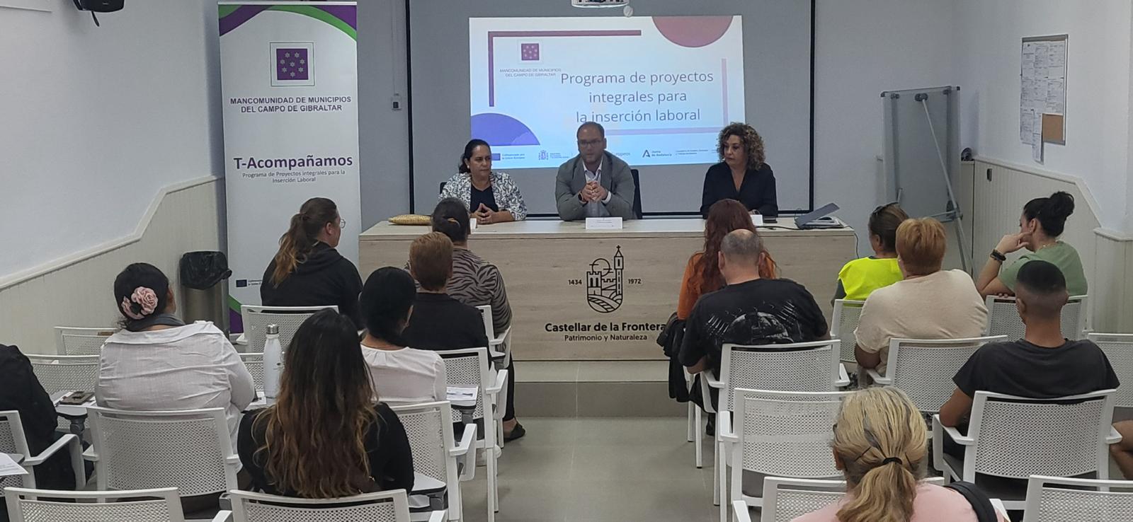 Con la participación del alcalde de Castellar de la Frontera, Adrián Vaca, junto a la delegada de Bienestar Social, Victoria González y la vicepresidenta de la Mancomunidad de Municipios del Campo de Gibraltar, María Teresa García León, ha tenido lugar el acto de presentación y la correspondiente sesión informativa al conjunto de alumnos/as participantes en el novedoso programa Proyectos Integrales para la inserción Laboral, “T – Acompañamos»