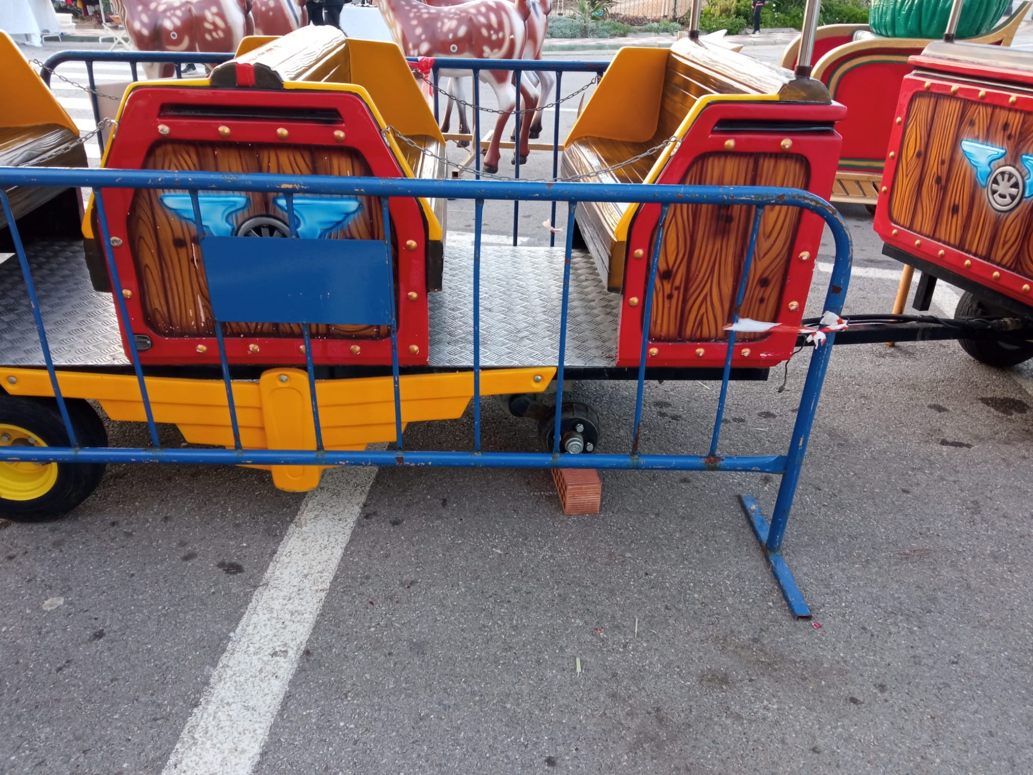 Una de las atracciones más demandadas del Poblado, el tren que pasea a las familias, ha sido limitado, ya que sus ruedas se han pinchado y extraído de forma intencionada.