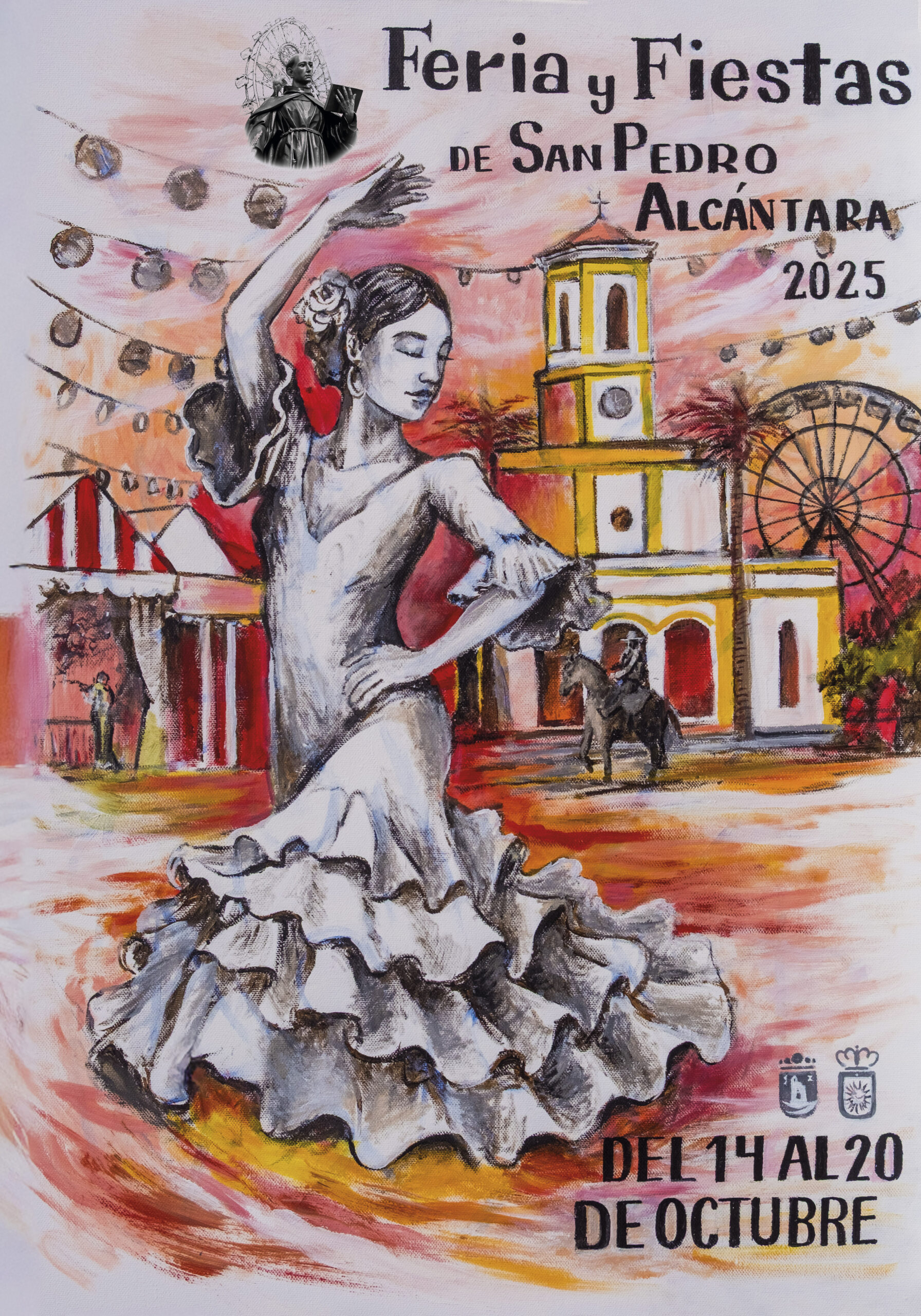 El Ayuntamiento ha presentado hoy el cartel de la Feria y Fiestas de San Pedro Alcántara 2025, obra del artista local José Enrique Ragel ‘Bestror’. El acto ha contado con la presencia del teniente de alcalde sampedreño, Javier García, y la concejala de Fiestas, Yolanda Marín, quienes han destacado que el trabajo ha sido seleccionado en un proceso participativo en el que se recibieron más de 50 propuestas y en el que ha sido el único que se ha registrado en formato físico.