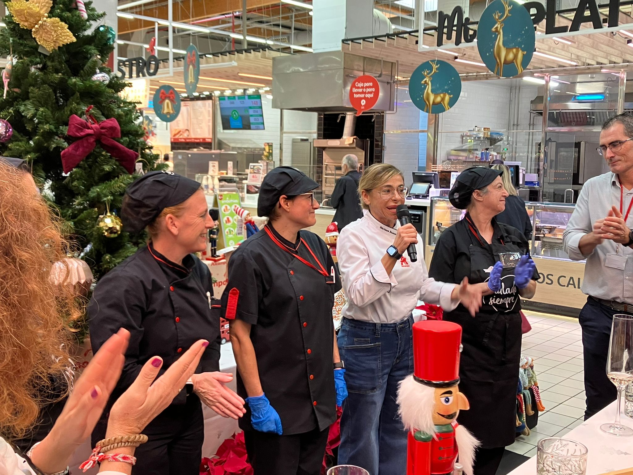 Paso a paso los responsables de las distintas áreas( Alimentación, Bebidas, Juguetes, adornos navideños ) explicaron las principales novedades. Fue una visita guiada en pleno momento de compras donde se dieron a conocer las expectativas. Todo es destacable, pero la zona de quesos, jamones y pescados-mariscos se convierten en grandes imanes de cara al cliente. La variedad de quesos es de las de mayores referencias de toda España, como ejemnplo.