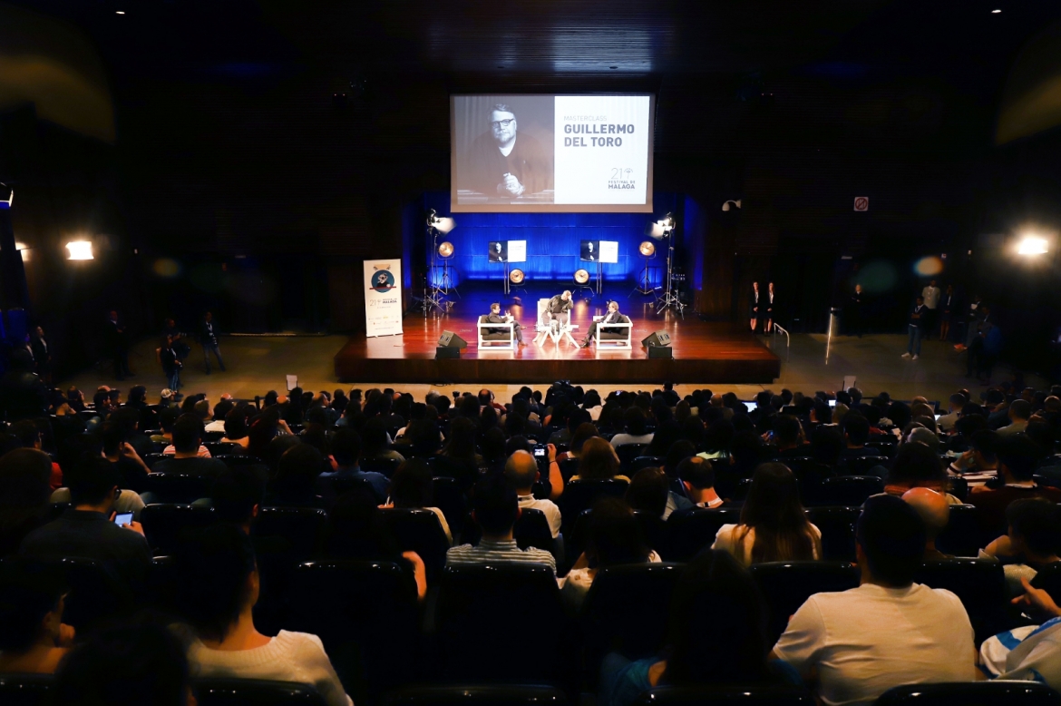 Ha sido más de una hora y media de conferencia en la que Del Toro ha ido desgranando muchas de las claves de su manera de entender el cine, desde sus directores de referencia a su proceso creativo. El coloquio ha estado presentado por el director del Festival de Málaga, Juan Antonio Vigar y por el guionista, productor y director Antonio Trashorras, autor del libro Del Toro por del Toro (Ed. Luces del Gálibo) y coguionista de El espinazo del diablo, primer largometraje dirigido por Del Toro en España. Este acto ha servido como carta de presentación de este volumen que recopila el pensamiento del autor partiendo de diversas charlas mantenidas con el cineasta a lo largo de los años, así como de conferencias, clases magistrales y entrevistas tanto publicadas como inéditas.
